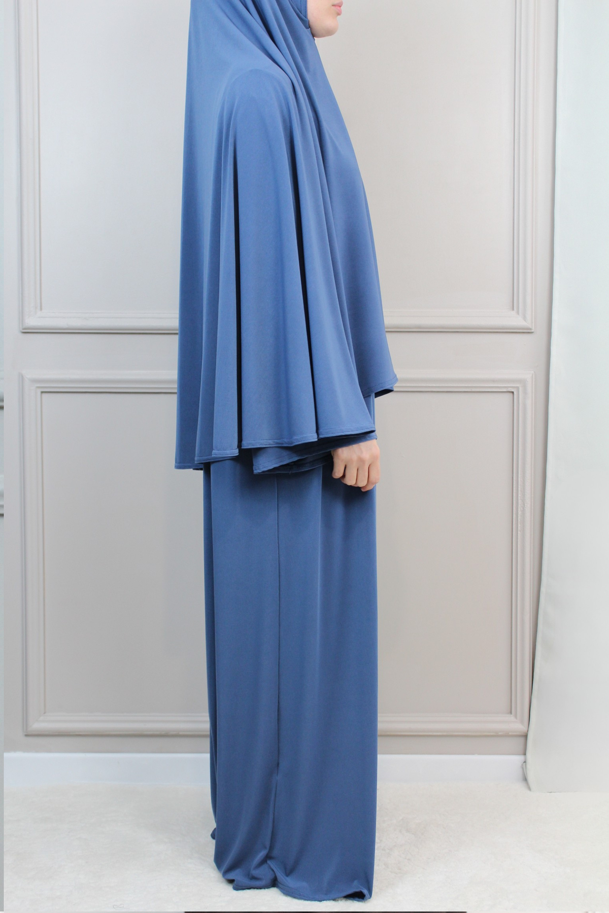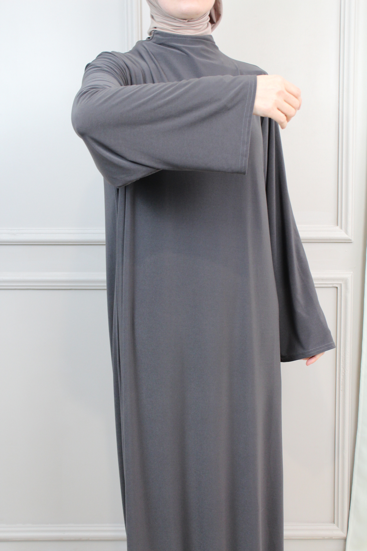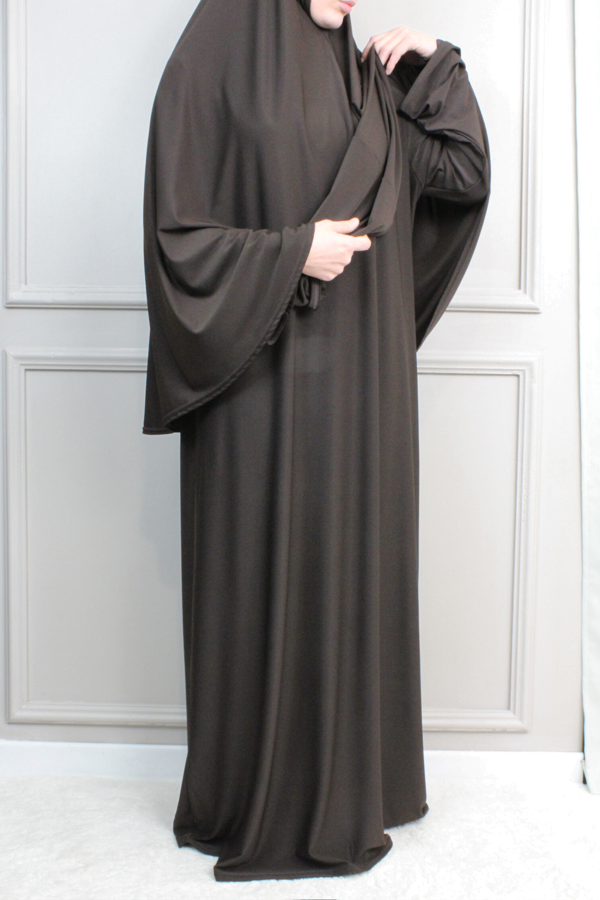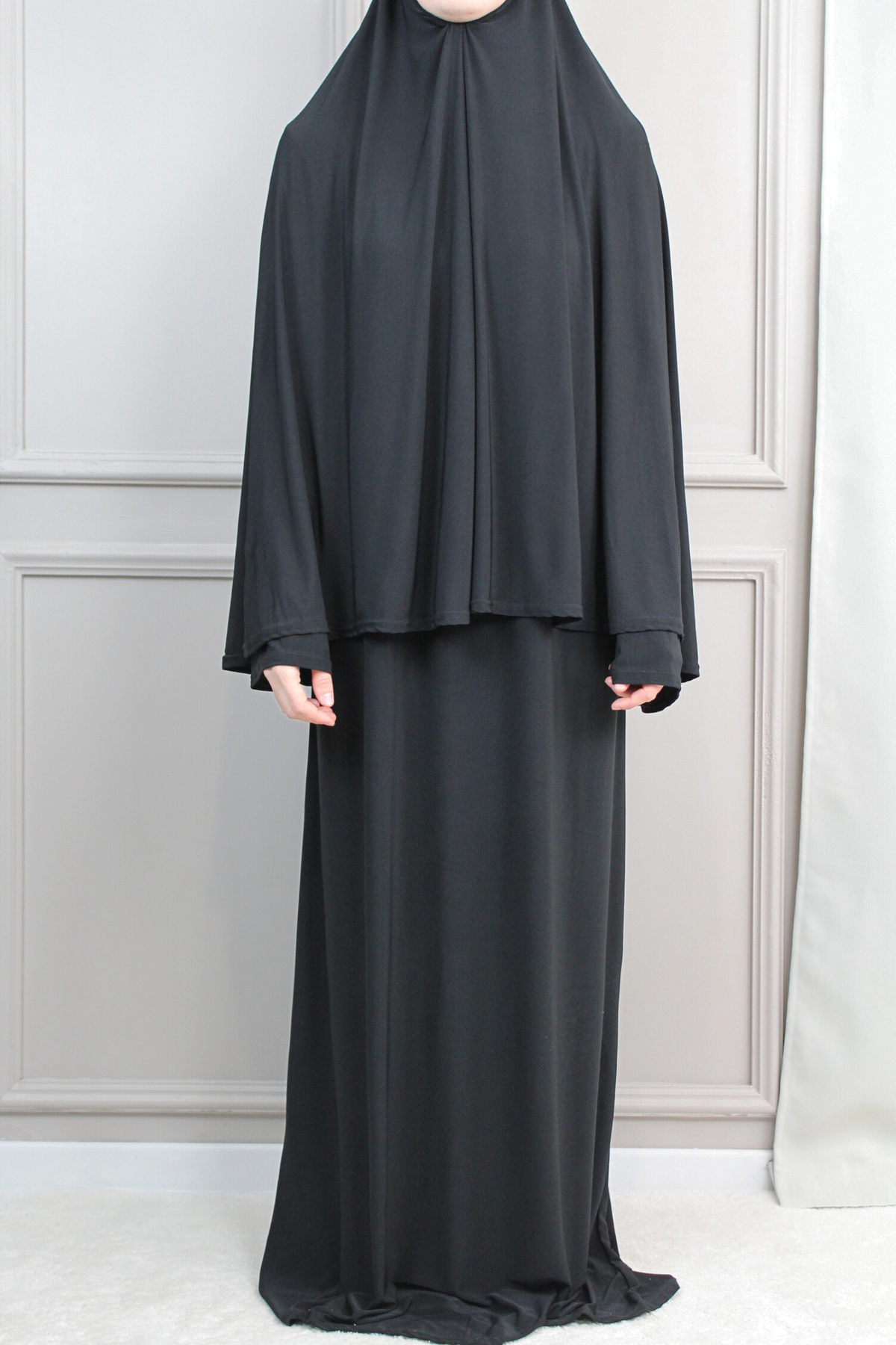 Das Abaya-Khimar Set besteht aus dem elastischen Premium Jersey Stoff.